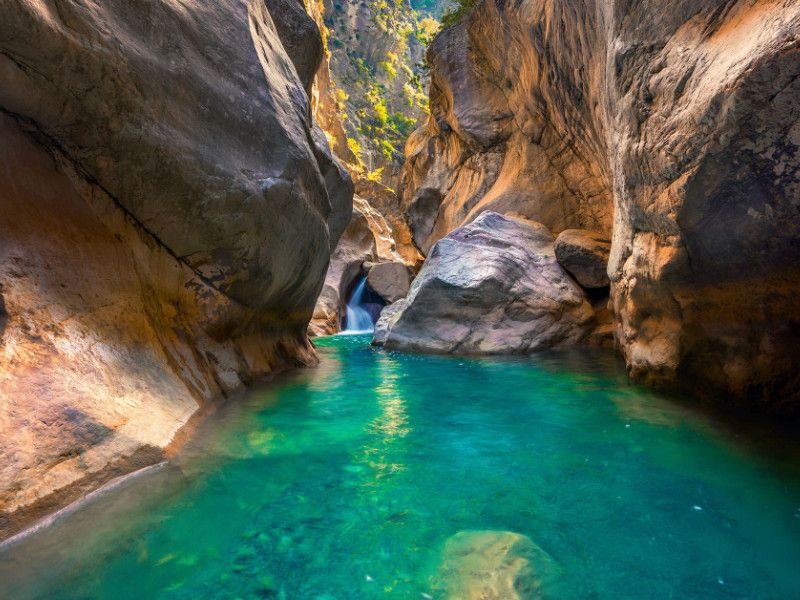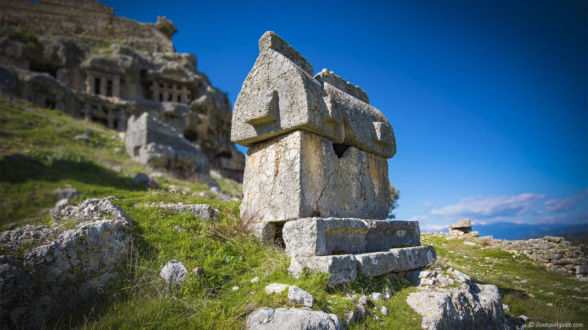 Depart from port of Fethiye and drive to Tlos. The ruins of Tlos, an ancient settlement perched high on the hilltops that include an historical amphitheatre and rock tombs. You will continue to Saklikent. This gorge is the second longest gorge in Europe. Prepare to get your feet wet as you paddle across icy streams in your exploration of the widening rock canyon or just relax and watch the world go by, sipping Turkish tea on the riverside platform cafes, perched on water falls and watch everyone else get wet! After all the visits, you will turn back to port of Fethiye.